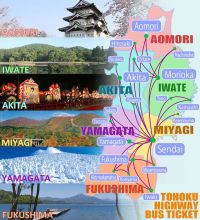 Seit Oktober dieses Jahres gibt es das „Treasureland Tohoku Highway Bus Ticket“, das für vier oder sieben Tage auf 60 Busstrecken in der Provinz Tohoku Gültigkeit hat. Es kostet ca. 80,00 EUR für vier Tage und 100,00 EUR für sieben Tage. In Tohoku liegen so bekannte Sehenswürdigkeiten wie die Hirosaki-Burg aus der Edo-Ära, das Nyuto Onsen Dorf mit acht landestypischen Ryokans und die Stadt Hiraizumi, deren historischer Kern als UNESCO Weltkulturerbe gilt. In allen Regionen finden im Februar 2017 äußerst sehenswerte, illuminierte Schneefestivals statt.