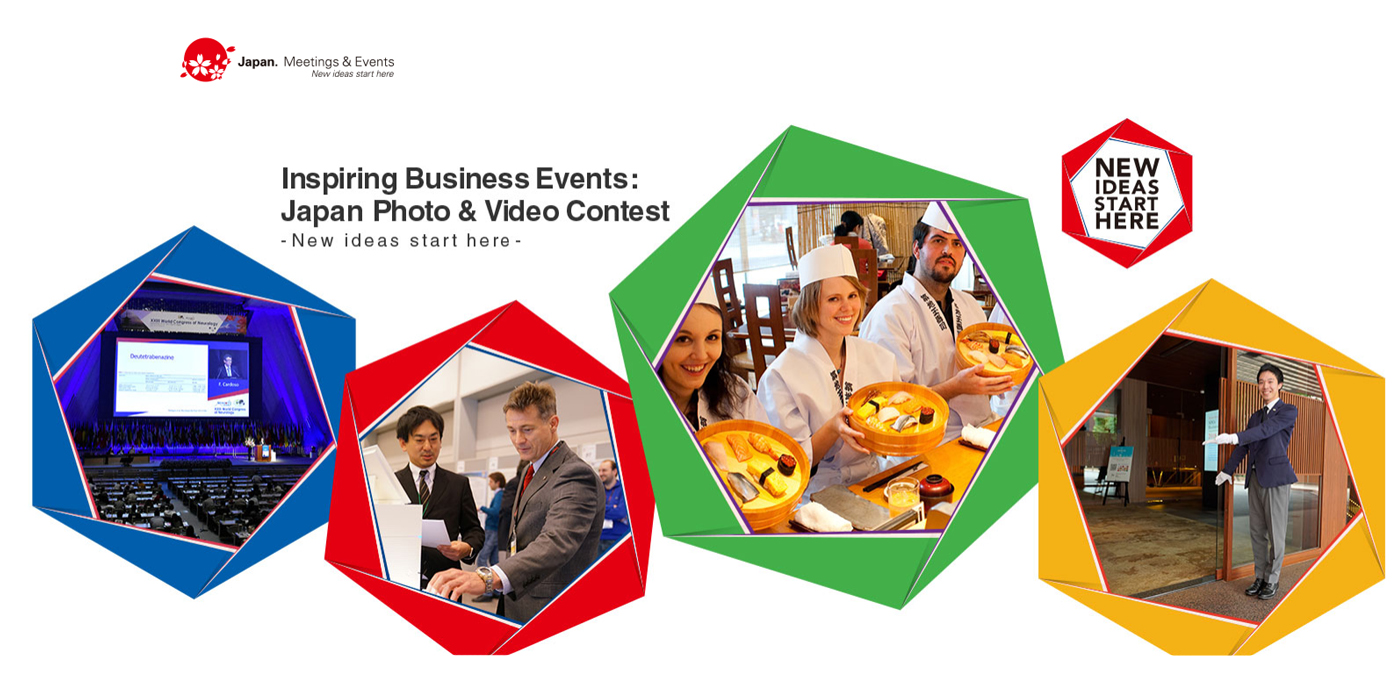 Das Japan Convention Bureau, eine Sektion der Japanische Fremdenverkehrszentrale (JNTO), veranstaltet einen Wettbewerb für Foto- und Videoinhalten. Gesucht wird im Rahmen des "Inspiring Business events: Japan Photo & Video Contest – New Ideas Start Here" nach Fotos und Videos, die den Zuschauer dazu inspirieren, Japan als MICE-Destination und Veranstaltungsort für geplante Business Events zu wählen. Wenn Sie ein Profi der Meetingbranche sind oder an Meetings, Kongressen, Incentives oder Messen in Japan teilgenommen haben, teilen Sie doch einige ihrer "Wow!"-Momente, die Sie während des Aufenthalts in Japan festgehalten haben.