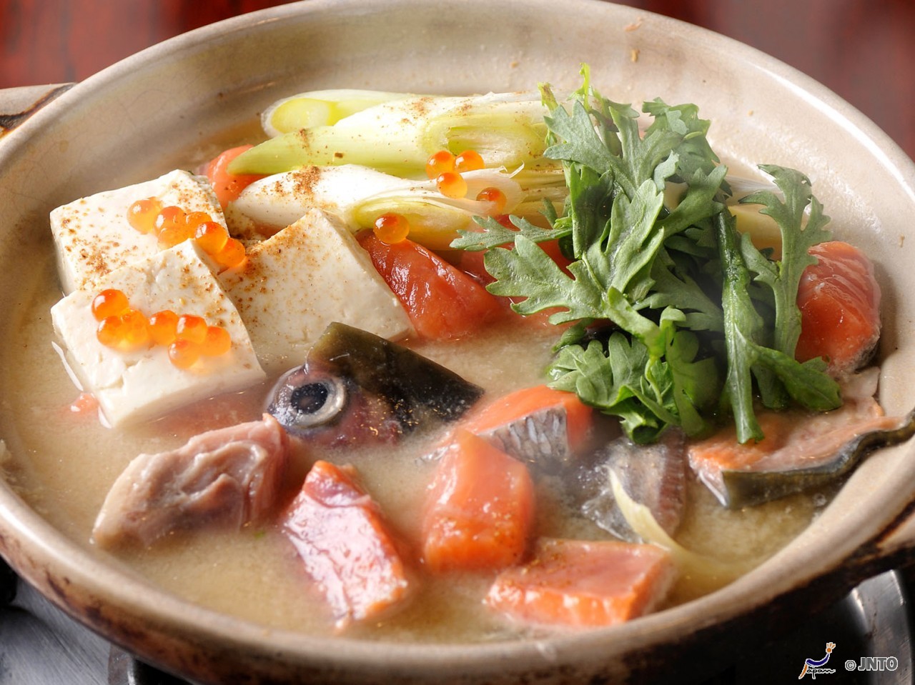 Ishikari-nabe ist ein typisches Gericht aus Hokkaido, für das frischer Lachs vom Kopf bis zum Schwanz verarbeitet wird. Der Name leitet sich vom Fluss Ishikari ab, der für seine Lachsbestände bekannt ist. Das gleiche Gericht ist in der Obihiro-Region als Tokachi-nabe bekannt. Lachsstücke werden mit Gemüse, Tofu und Konnyaku (Teufelszunge) in mit Miso abgeschmeckter Seetangbrühe geschmort. Kartoffeln und Kohl aus der Region verleihen diesem deftigen Gericht zusätzliches Aroma, sodass Sie in den Genuss von Hokkaidos Meeres- und Landerzeugnissen kommen. Die Ursprünge von Ishikari-nabe liegen in einem Eintopf aus Lachs und Gemüse, der vom Ainu-Volk im 17./18. Jh. gekocht wurde. Ankömmlinge aus Südjapan ergänzten das Rezept später um Miso.