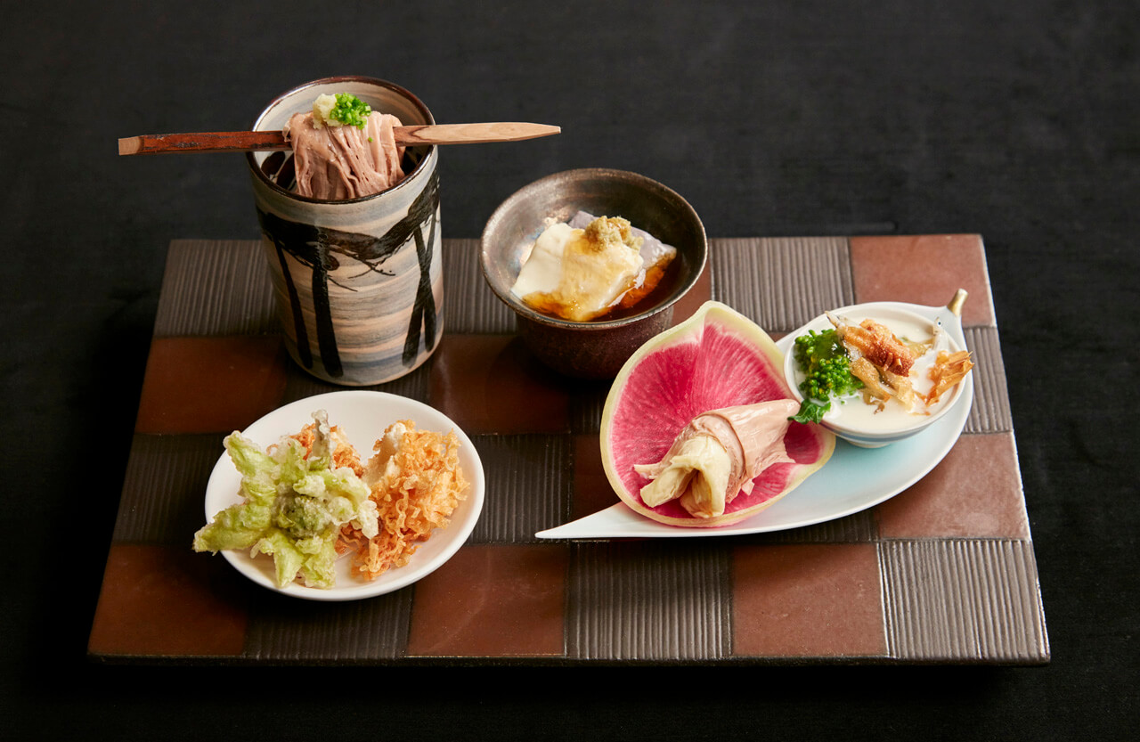 Wenn Sojamilch gekocht wird, bildet sich an der Oberfläche eine dünne Schicht. Für die Zubereitung von Yuba wird diese Schicht vorsichtig abgeschöpft. Ursprünglich kam das Gericht zusammen mit Tofu aus China, und mit der Zeit wurde es zu einem festen Bestandteil japanischer Esskultur. Yuba kann getrocknet und um Füllungen gewickelt werden, es kann auch Eintöpfen und gekochten Gerichten hinzugefügt werden oder sogar, genau wie Sashimi, mit Sojasauce und geriebenem Wasabi (japanischer Meerrettich) gegessen werden. Heutzutage gilt Yuba als überaus nahrhaftes Essen, das zudem leicht in der Zubereitung ist. Neben Nikko (Tochigi), ist auch Kyoto für die Herstellung von Yuba bekannt. In historischen Städten wie diesen sind Yuba-Gerichte seit Generationen beliebt, und lange bestehende Yuba-Restaurants sind nach wie vor sehr gut besucht. Probieren Sie ruhig diesen traditionellen Geschmack.