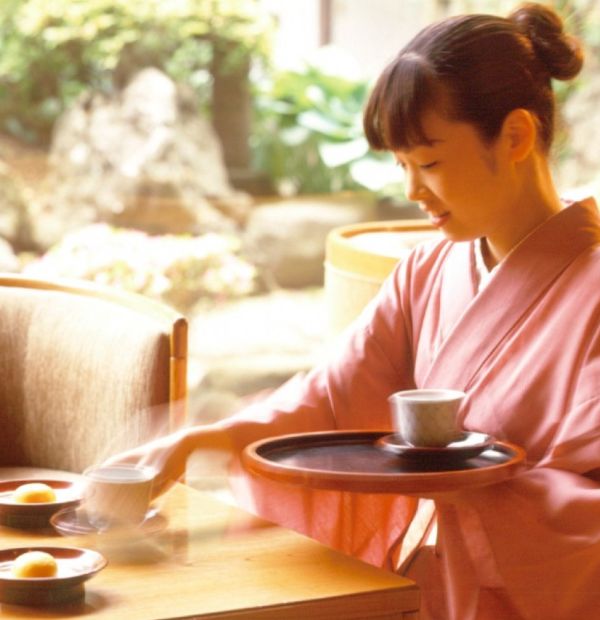Im Restaurant wird in Japan sencha serviert – die Alltagsvariante des grünen Tees. Man lässt ihn sehr kurz ziehen und kann die Blätter ja nach Qualität bis zu dreimal aufgießen. Daneben gibt es eine ganze Reihe mildere Varianten, bei denen auch größere Blätter und Stengel mit in den Tee kommen. Besonders magenschonend und koffeinarm ist der bräunliche hôjicha, der durch Rösten etwas nussig schmeckt. Es gibt ihn oft am Frühstücksbuffet.