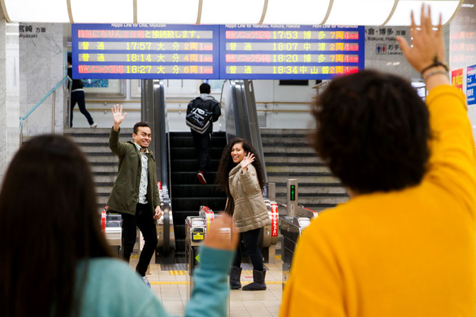 Wir kamen mit einem schnellen Flug von Haneda Airport zum Oita Airport, wo wir von unserem Guide Saaya und Übersetzerin Kanako in Empfang genommen wurden. Es war zwar unser erstes persönlcihes Treffen, aber da wir bereits geschrieben und gechattet hatten, begrüßten wir uns schon überschwenglich. Endlich lernte man sich richtig kennen!