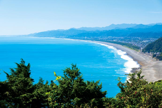 22km der Iseji-Route führen an der Küste entland des Shichirimihama-Strands. Von einem kleinen Vorsprung etwa 10 Min. Laufzeit von der Höhe des Passes entfernt, kann man einen tollen Ausblicken auf den Strand genießen.