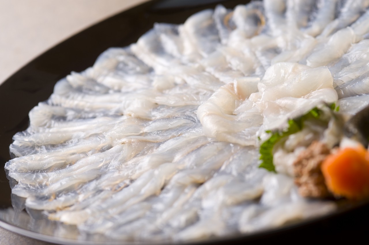 Fugu Sashimi wird so dünn geschnitten, dass man durch die sorgfältig arrangierten Scheiben das Muster des Tellers sehen kann. Das Gericht sieht vorzüglich aus, und das zarte, weiße Fleisch ist außerordentlich schmackhaft. Aus Kugelfisch wird auch ein Fuguchiri genannter Eintopf gemacht. Hire-zake ist wiederum ein Sake-Getränk mit getrocknetem Kugelfisch. Kugelfische sehen niedlich aus, aber es gibt Arten, die ein tödliches Gift namens Tetrodotoxin enthalten. Kugelfischköche müssen eine spezielle Lizenz erwerben. Lizenzierten Köchen wird beigebracht, die giftigen Bestandteile vorsichtig zu entfernen, damit der Fisch beim Verzehr absolut sicher ist. Der Kugelfischgeschmack hat schon vor langer Zeit die Herzen der Japaner erobert.